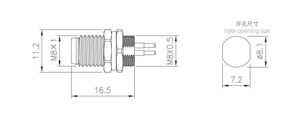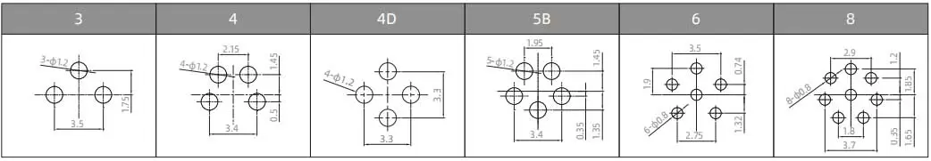 Steckverbinder der M8-Serie nach europäischem Standard, Strukturtyp: Frontmontage-Buchse, Verbindungsmethode: Leiterplatte, Pin-Typ: Stecker, Anzahl der Kontakte: 3, 4, 5, 6, 8 Pin, Abschirmung: Nein, Zertifizierung: CE, RoHS, UL, Standard :IEC 61076-2-104,